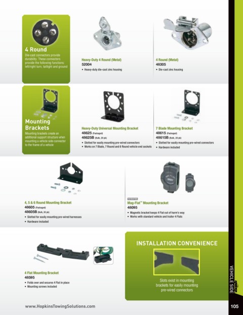 • Slotted for easily mounting pre-wired harnesses • Works with standard vehicle and trailer 4 Flats