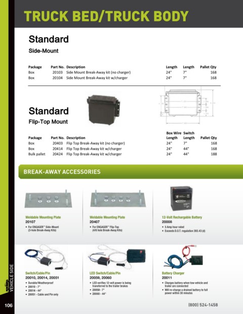 Box 20104 Side Mount Break-Away kit w/charger 24" 7" 168