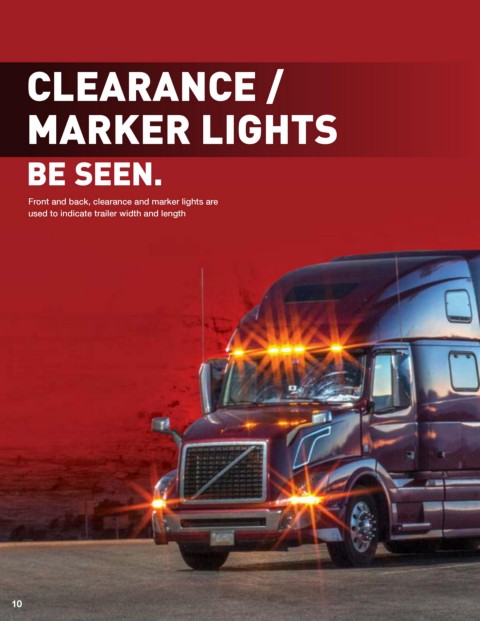 CLEARANCE / MARKER LIGHTS BE SEEN. Front and back, clearance and marker lights are used to indicate trailer width and length (800) 524-1458 10 (8 0 0) 5 2 4 - 1 4 5 8