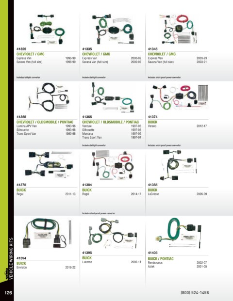 VEHICLE WIRING KITS 41394 2016-22 41395 2006-11 41405 2002-07