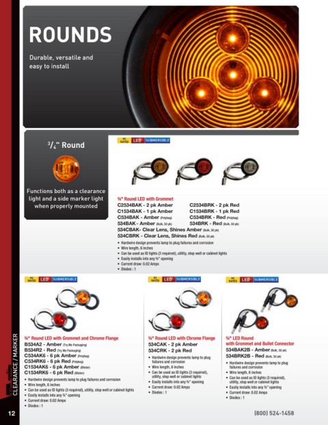 when properly mounted C2534BAK - 2 pk Amber C2534BRK - 2 pk Red
