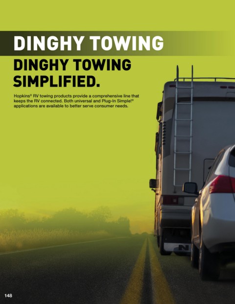 DINGHY TOWING DINGHY TOWING SIMPLIFIED. Hopkins RV towing products provide a comprehensive line that ® keeps the RV connected. Both universal and Plug-In Simple! ® applications are available to better serve consumer needs. 148 (800) 524-1458