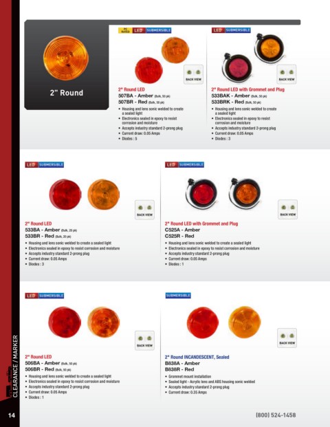 BRACKETS / PLUGS / GROMMETS CLEARANCE / MARKER 2" Round LED 2" Round INCANDESCENT, Sealed