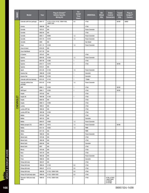 VEHICLE LOOKUP GUIDE Nova 1985-88 N/A 0.5 Power Converter