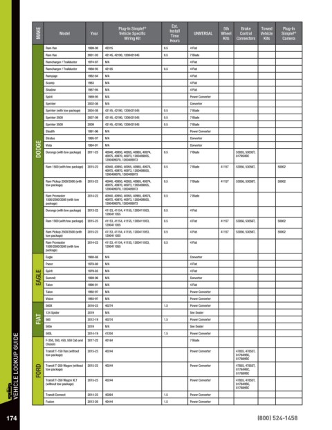 VEHICLE LOOKUP GUIDE FORD Transit T-150 Van (without 2015-23 40244 Power Converter 47855, 47855T,