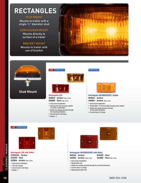 BRACKETS / PLUGS / GROMMETS CLEARANCE / MARKER Rectangular LED with Reflex Rectangular INCANDESCENT with Reflex