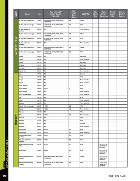 VEHICLE LOOKUP GUIDE Mountaineer 2006-10 40345 0.5 4 Flat 81783HBC