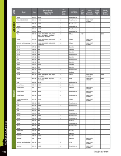 VEHICLE LOOKUP GUIDE Murano 2018-20 N/A 1 1 Converter 47635, 47635T,
