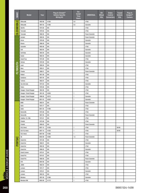 VEHICLE LOOKUP GUIDE Grand Prix 1988-08 N/A Power Converter