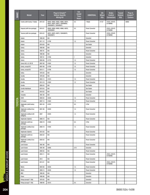 VEHICLE LOOKUP GUIDE Land Cruiser 2012 N/A 1.5 Power Converter 47815, 47815T,