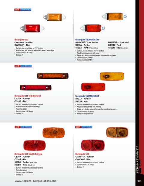 • Surface, ear mount base on 2 /4" centers 486BA - Amber (Bulk, 50 pk) 486BR - Red (Bulk, 50 pk)