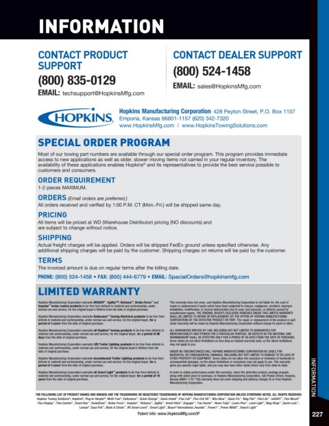 Patent info: www.HopkinsMfg.com/IP 227
