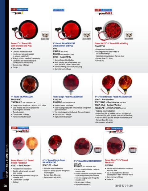 STOP / TAIL / TURN LIGHTS Power Maxx 4 /16" Round 4 /16" Round Single Faced 3 /8" Round Metal INCANDESCENT Power Maxx 3 /8" Round