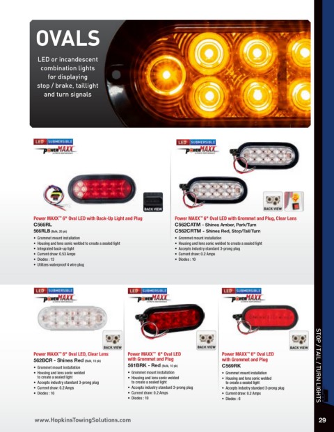 Power MAXX 6" Oval LED with Back-Up Light and Plug Power MAXX 6" Oval LED with Grommet and Plug, Clear Lens