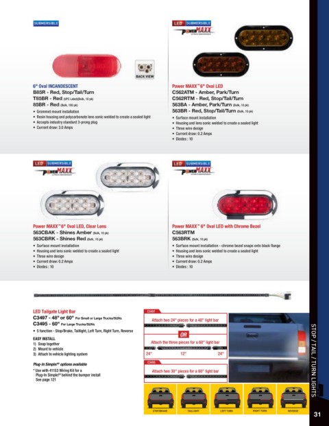 • Grommet mount installation • Grommet mount installation 85BR - Red (Bulk, 100 pk) 563BA - Amber, Park/Turn (Bulk, 10 pk)
