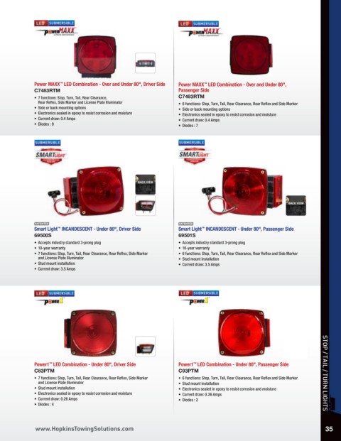 • 7 functions: Stop, Turn, Tail, Rear Clearance, Rear Reflex, Side Marker • 6 functions: Stop, Turn, Tail, Rear Clearance, Rear Reflex and Side Marker