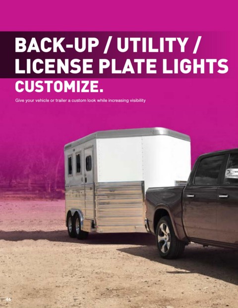 BACK-UP / UTILITY / LICENSE PLATE LIGHTS CUSTOMIZE. Give your vehicle or trailer a custom look while increasing visibility TRAILER LIGHTING 44 (800) 524-1458