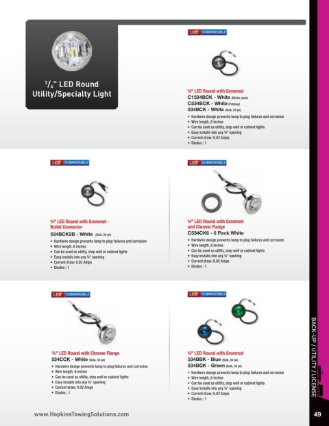 • Can be used as utility, step well or cabinet lights • Wire length, 6 inches