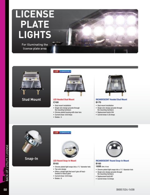 BACK-UP / UTILITY / LICENSE Snap-In LED Round Snap-In Mount 1 INCANDESCENT Round Snap-In Mount