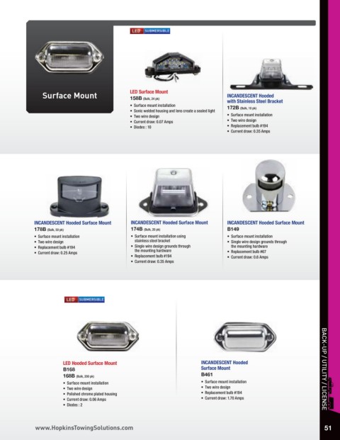 • Replacement bulb #194 • Single wire design grounds through the mounting hardware
