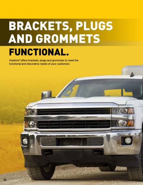 BRACKETS, PLUGS AND GROMMETS FUNCTIONAL. Hopkins offers brackets, plugs and grommets to meet the ® functional and decorative needs of your customers 58